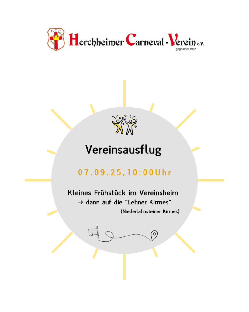 Nach einem gemütlichen gemeinsamen Frühstück ab 10:00 Uhr im Vereinsheim, „wandern“ wir in diesem Jahr zur „Lehner Kirmes“, um bei unseren Freunden in Niederlahnstein ein paar schöne Stunden mit Euch zu verbringen.